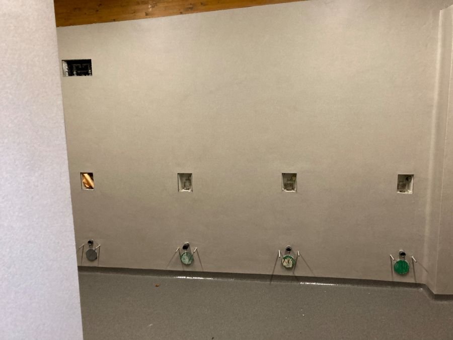 Der neue Boden- und Wandbelag ist bereits aufgebracht und abgetrocknet. In den kommenden Tagen werden die Elektro- und Sanitäranlagen installiert, zu guter Letzt werden die neuen Scham- und Trennwände gestellt.