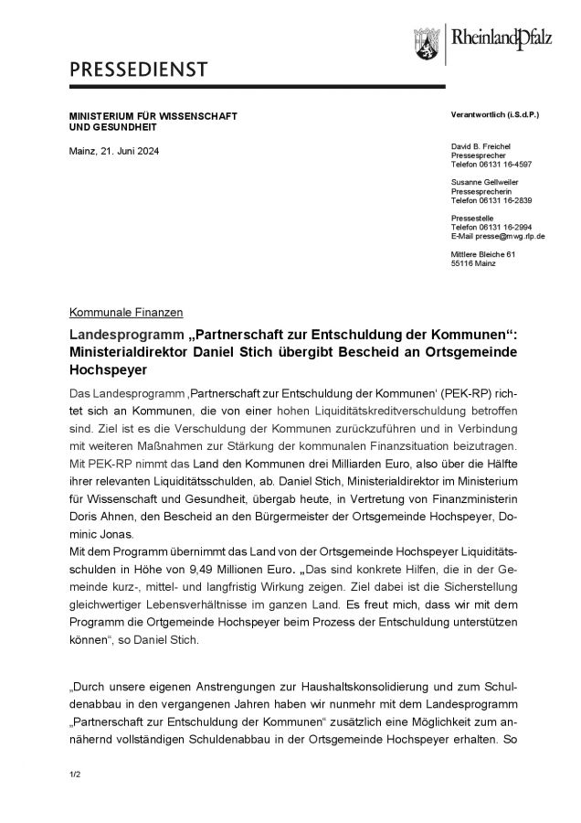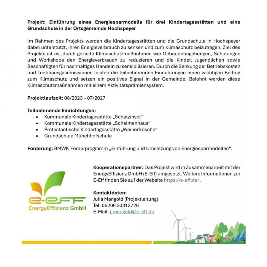 Die Ortsgemeinde Hochspeyer nimmt am KEF des Landes Rheinland-Pfalz teil.