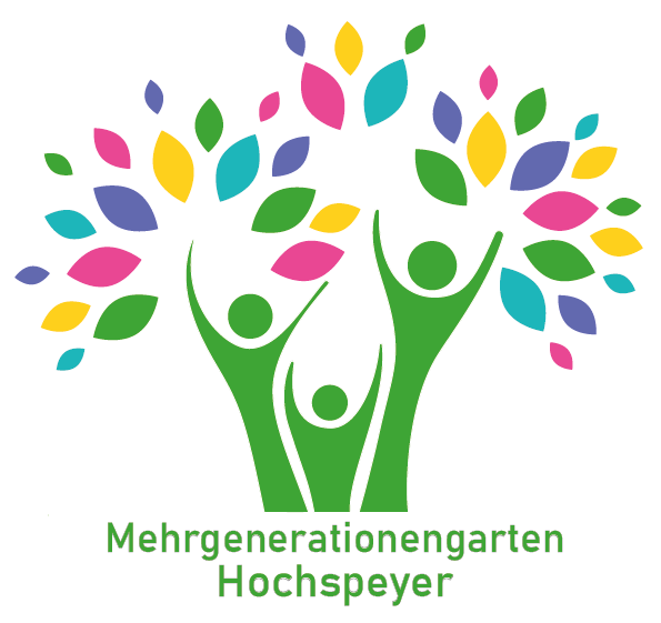 Das Logo als Teil der persönlichen Identifikation der am Projekt Beteiligten, wurde 2020 nach einer Ausschreibung an die im Vorfeld beteiligten Ehrenamtlichen, eingereicht. Einstimmig votierte der Ortsgemeinderat für den Entwurf der Grundschule Münchhofschule Hochspeyer, die die Logo-Vorlage wie folgt beschreibt: „Der Mehrgenerationengarten ist für Menschen gebaut, die dort Spaß haben sollen. Die Menschen sind zentral in den Baumstämmen zu sehen. Der Mehrgenerationengarten steht für das Zusammentreffen von Groß und Klein. Deswegen wurde die Gestaltung der Baumstämme in verschiedenen Größen ausgeführt. Im Mehrgenerationsgarten befinden sich viele Obstbäume und Blumen, dafür stehen die bunten Blätter. Fröhliche Figuren und viele Farben symbolisieren das Zusammenkommen, den Spaß, die Spiel- und Freizeitmöglichkeiten.“