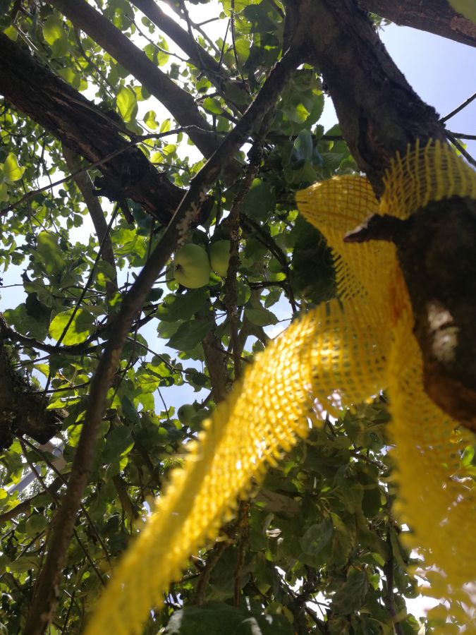 Die Obstbäume auf den ortseigenen Grundstücken im Mehrgenerationengarten und der Streuobstwiese Birkenstraße mit den „Frechen Früchtchen“ markieren wir mit einem „Gelben Band.“