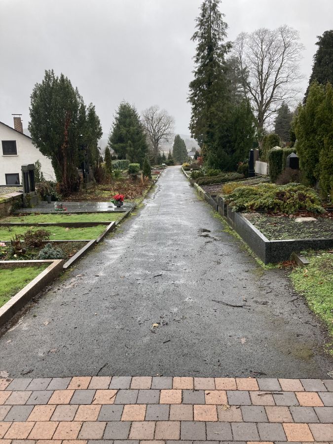 Ein weiterer Weg wird mit ansprechendem Pflaster-Belag ausgebaut. Dieses Jahr ist der "Lückenschluss" des unteren Friedhofswegs vom kleinen Eingang in der Friedhofstraße bis zum fußläufigen Zugang der Enkenbacher Straße (Bereich Memoriam-Garten), geplant. Erste Gespräche mit der ausführenden Firma sind geführt. Wenn es die finanziellen Möglichkeiten zulassen, soll 2021 noch ein weiterer Weg gepflastert werden kann.