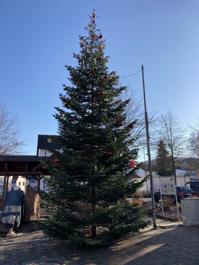 So ist der Weihnachtsbaum auch in Zeiten der schwierigen Corona-Pandemie eine Augenweide in der Ortsmitte, der in der Adventszeit eine besinnliche vorweihnachtliche Stimmung verbreiten wird.