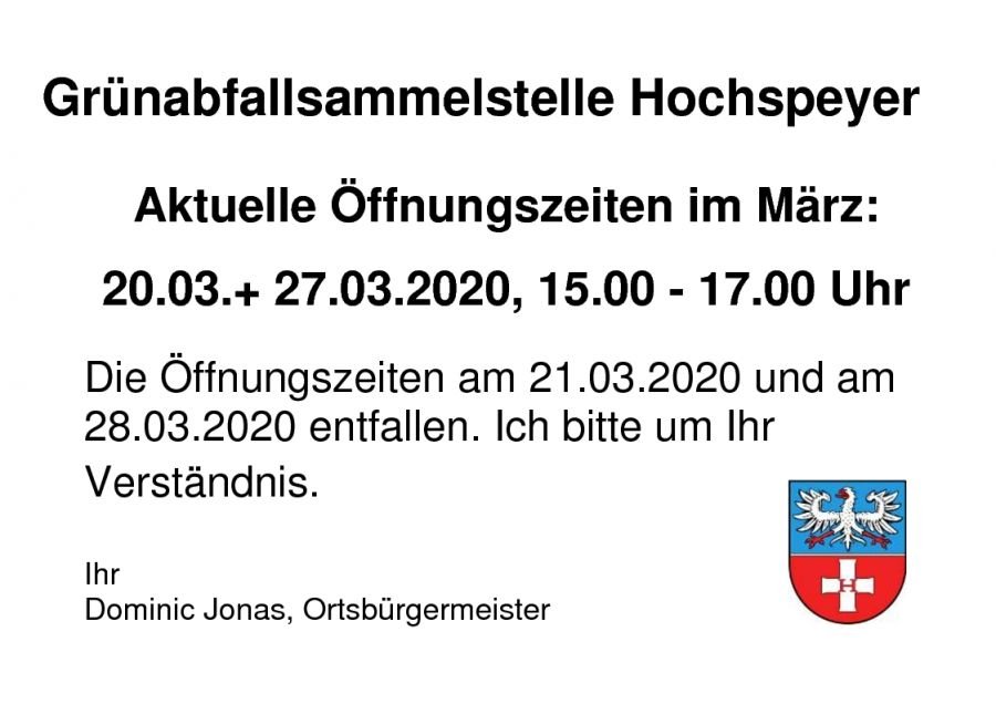 Ich werde Sie weiterhin über das Amtsblatt, die Homepage und über andere Medien auf dem Laufenden halten. Auf die Veröffentlichungen der Verbandsgemeindeverwaltung wird ergänzend hingewiesen.