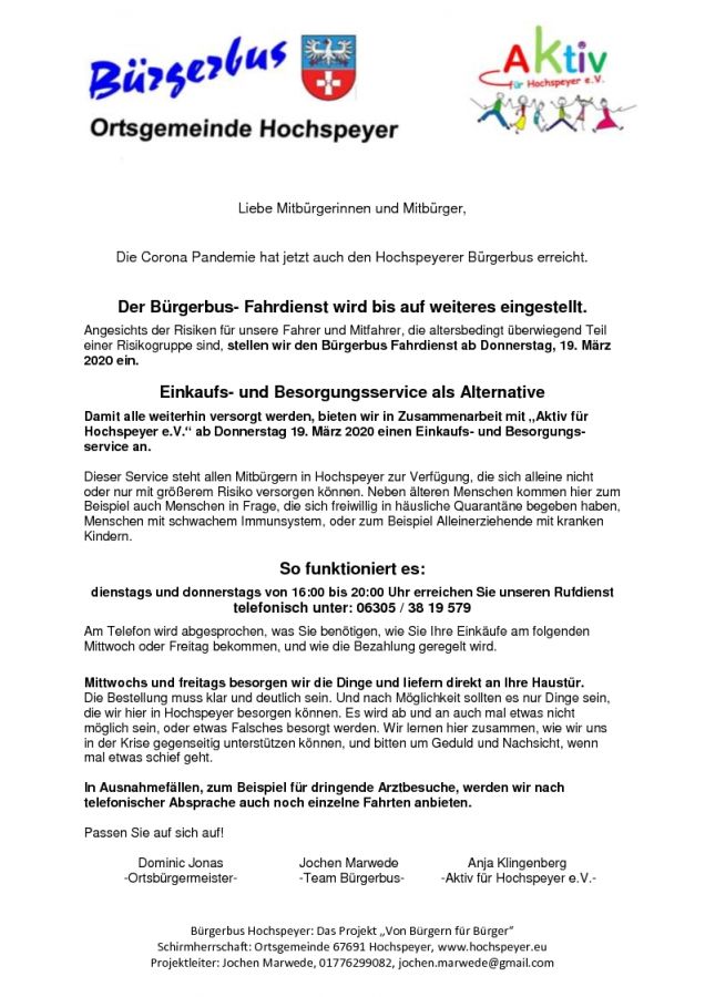 Ich bin für Sie aber weiterhin unter der bekannten Telefonnummer 06305/71-116 und per Email jonas@hochspeyer.eu erreichbar und für Ihre Anliegen da.
