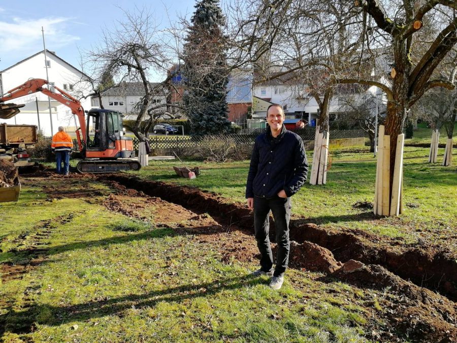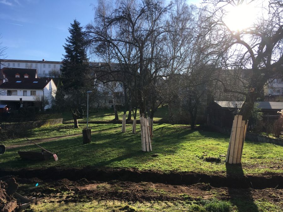 Seit 14. Januar ist die beauftragte Firma mit den vorbereitenden Arbeiten zum Bau des Mehrgenerationengartens in unserer Ortsmitte tätig. Bei strahlendem Sonnenschein gehen die Arbeiten gut voran.