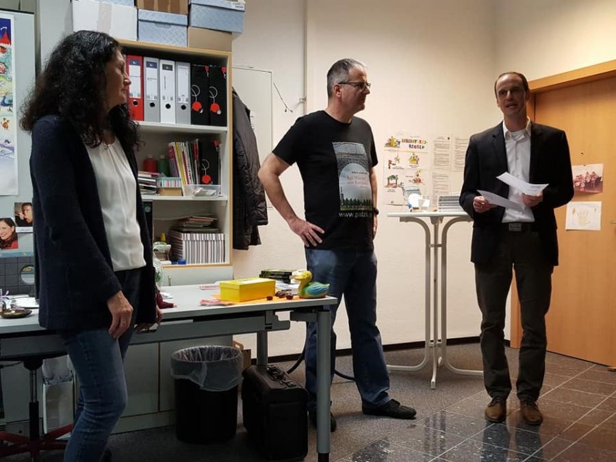 Herr Haus, Koordinator der Ausstellung für die Caritas Kaiserslautern und Frau Marwede, Ansprechpartnerin des „Runden Tischs Asyl Hochspeyer“ engagieren sich seit Jahren beispielhaft mit vielen anderen ehrenamtlichen Helfern für die Integration der in Hochspeyer lebenden Flüchtlinge.