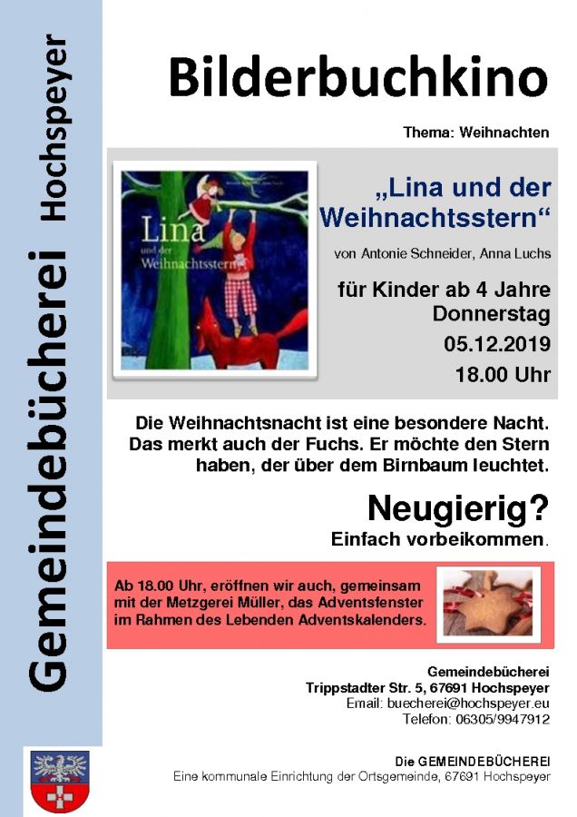 Danke sagen möchte ich auch dem Verein „Aktiv für Hochspeyer“, der die Lesung durch eine Spende unterstützte und die Bewirtung des Abends übernahm, sowie dem Team der Gemeindebücherei für die tolle Vorarbeit.