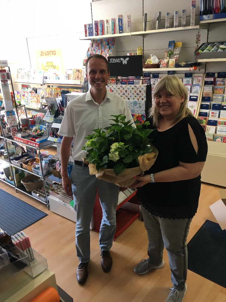 Heute durfte ich Frau Gabi Hillger und Ihrem Mann Uli Hillger die besten Wünsche der Ortsgemeinde für die Neueröffnung von Gabi´s Schreibwarenlädchen überbringen.