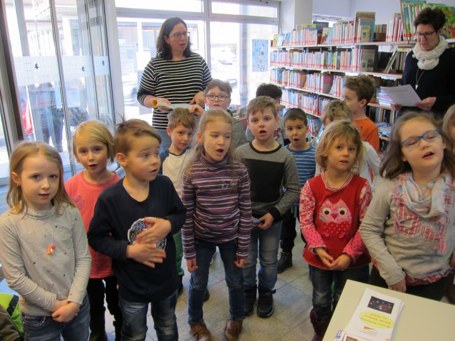Mit der Lese-Lok stellt die Bücherei den Kindergärten eine intensive Methode der Sprach- und Leseförderung mit dem Schwerpunkt der Bildbetrachtung zur Verfügung. Bei der Rückgabe berichteten die Kinder über ihre Lieblingsbücher und übergaben schön gestaltete Waggonkarten, die nun in der Bücherei bewundert werden können. Zu dem Lese-Lok Lied, nach der Melodie „Husch, Husch, Husch die Eisenbahn“, fuhr der Zug eine Runde um die Regale. Schließlich hieß es Abschied nehmen von der Lokführer Leslie und der Lese-Lok.