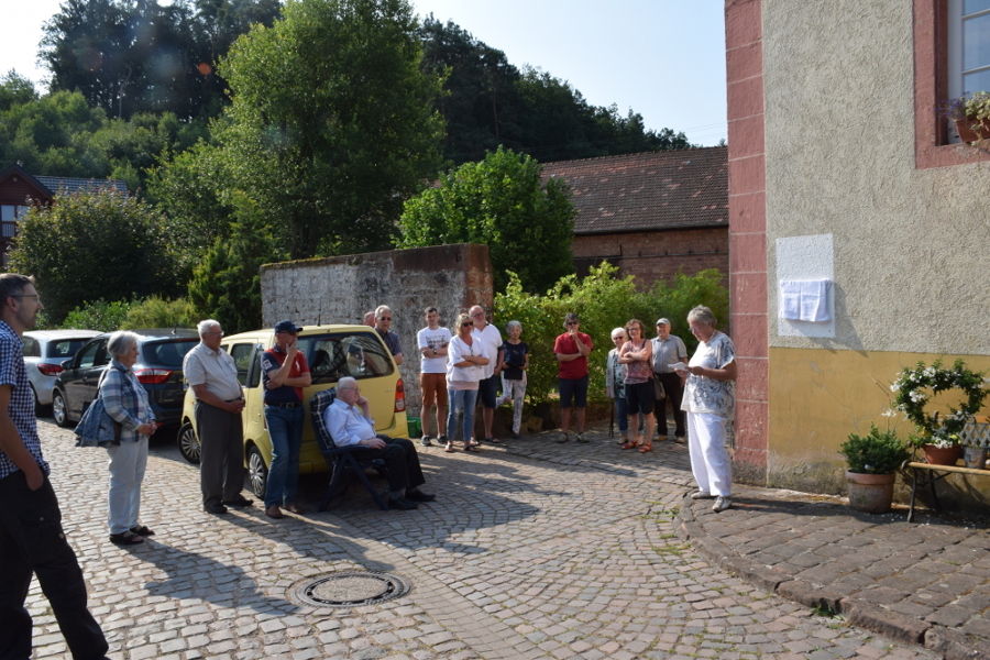 Am 14. Juli 2018 wurde an dem denkmalgeschützten, ehemals Würtz’schen Anwesen auf dem Münchhof, ein solches Täuferspurenschild von Frau Dr. Astrid von Schlachta, der Vorsitzenden des Mennonitischen Geschichtsvereins, und Frau Sibylla Hege-Bettac, Würtz-Nachfahrin in zehnter Generation, enthüllt. Für die Ortsgemeinde nahm ich gerne an der Feierstunde teil. „Je mehr etwas über die Vergangenheit eines Ortes ins Bewusstsein der Menschen gelangt, desto aufmerksamer werden sie für ihre Umgebung. Alles Alte schafft Identifikationsmöglichkeiten und Identifikation fördert das Engagement,“ so meine Überzeugung.
